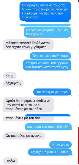Μάλιστα, η Αθηναΐς Νέγκα δημοσίευσε τα σχετικά sms που είχε ανταλλάξει με την Τίνα Μεσσαροπούλου και στα οποία η πρώτη αστειευόταν σε αρκετά σημεία…