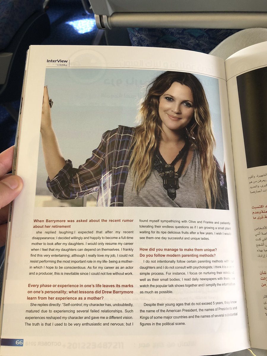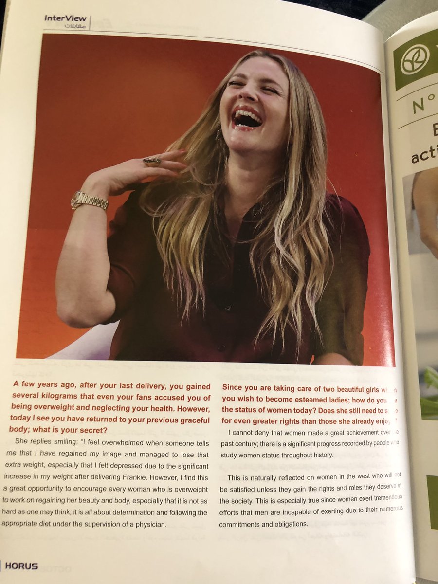 «Επομένως, τεχνικά, η Ντρου δεν κάθισε με μια δημοσιογράφο της EgyptAir για την συνέντευξη αλλά η δημοσιογράφος που είναι μέλος της HFPA (Σύλλογος Τύπου Εξωτερικού στο Χόλιγουντ) μερικέ φορές προμηθεύει άρθρα στην Egypt Air και αυτό συνέβη» ανέφερε η δήλωση του εκπροσώπου.