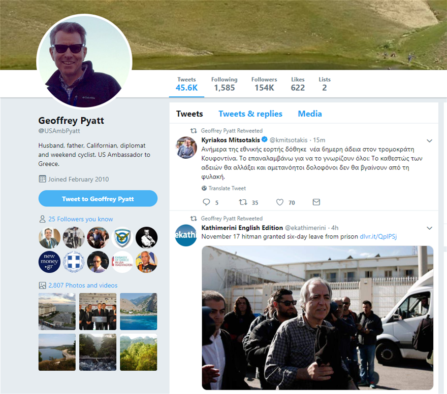 Μάλιστα ο Αμερικανός πρέσβης Τζέφρι Πάιατ, έκανε Retweet, τόσο την ανάρτηση της είδησης, όσο και την δημοσίευση του προέδρου της Νέας Δημοκρατίας.