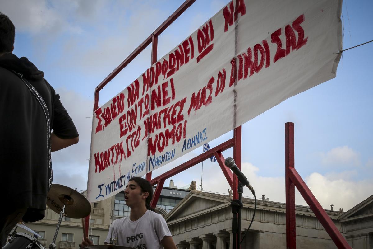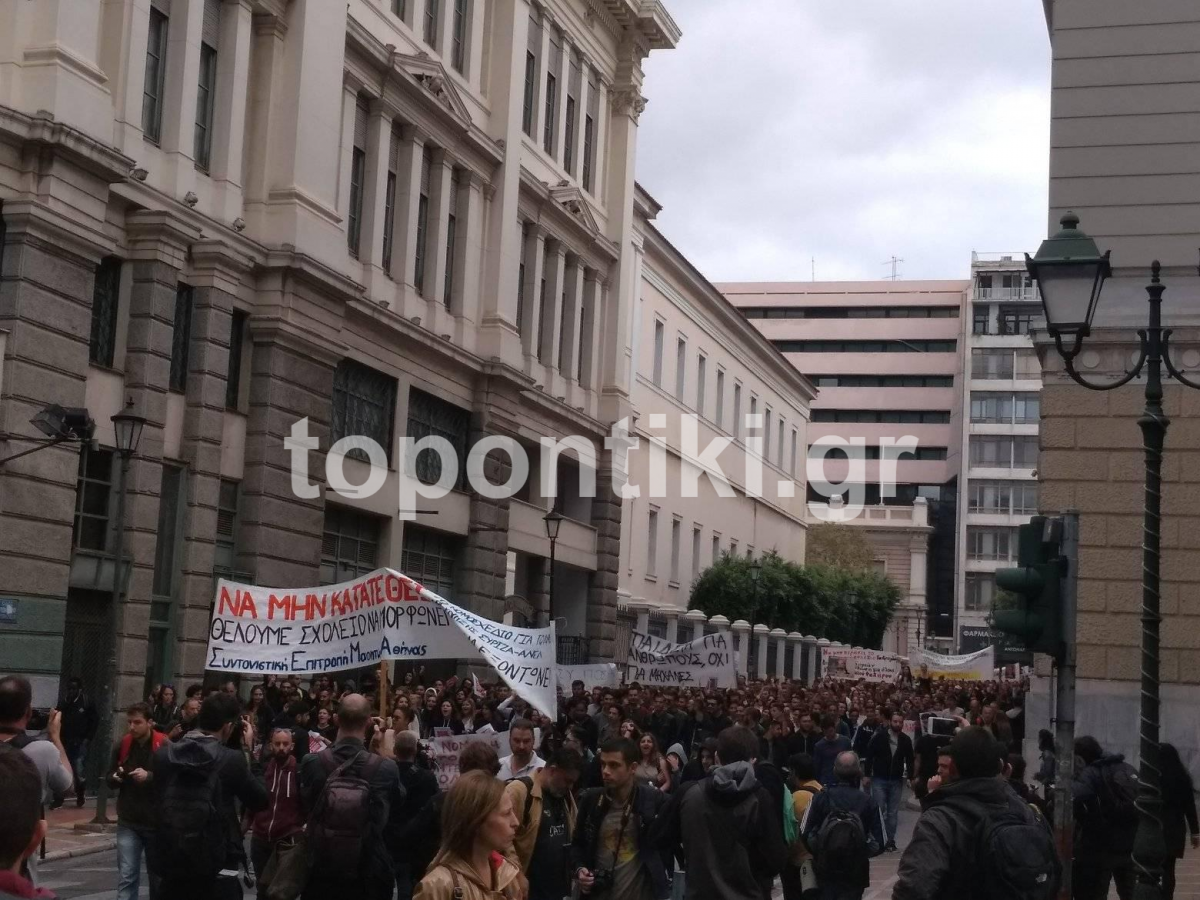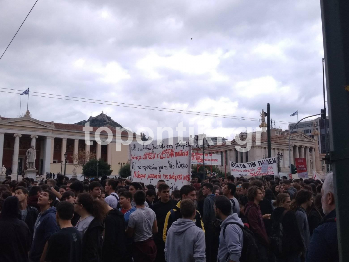 Με συνθήματα ενάντια στις προωθούμενες αλλαγές στο σύστημα εισαγωγής στη τριτοβάθμια εκπαίδευση, εκατοντάδες μαθητές διαδήλωσαν προς τη Βουλή και στη συνέχεια, μέσω της λεωφόρου Συγγρού, έφτασαν στο Πάντειο όπου πραγματοποίησαν συνέλευση.