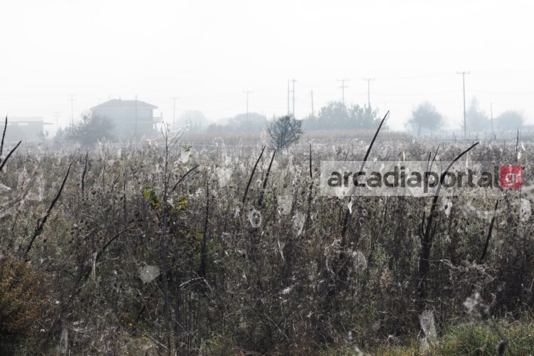 Λίγα χιλιόμετρα από την Τρίπολη, στην περιοχή της Μαντίνειας, χιλιάδες αραχνοειδή έχουν κάνει… πάρτι, καλύπτοντας με τους ιστούς τους τα πάντα, από φυτά και πέτρες, μέχρι ξερολιθιές.