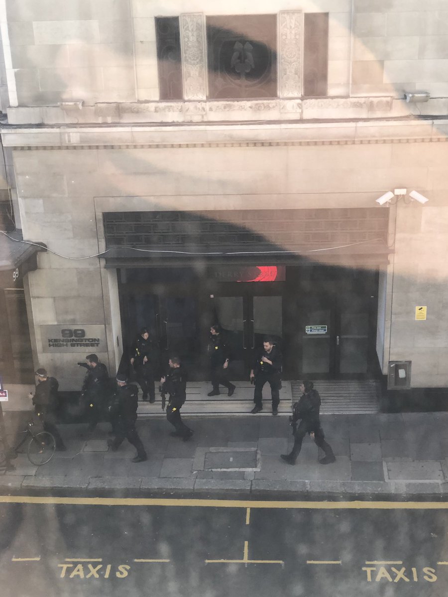 Ένοπλοι αστυνομικοί φτάνουν στα γραφεία της SONY στο Κένσινγκτον, έγραψε σε μήνυμά του στο Twitter ο επικεφαλής του οικονομικού τμήματος της Evening Standard.