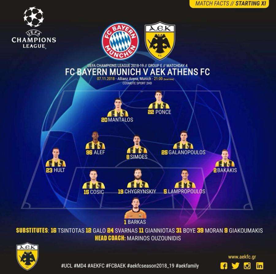 Τους έντεκα τους οποίους επέλεξε ο Νίκο Κόβατς για το ματς κόντρα στην ΑΕΚ ανακοίνωσε η Μπάγερν Μονάχου.