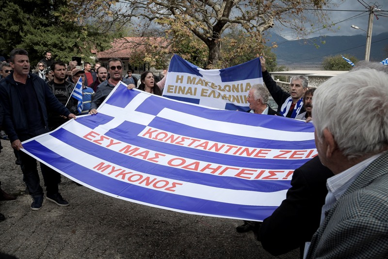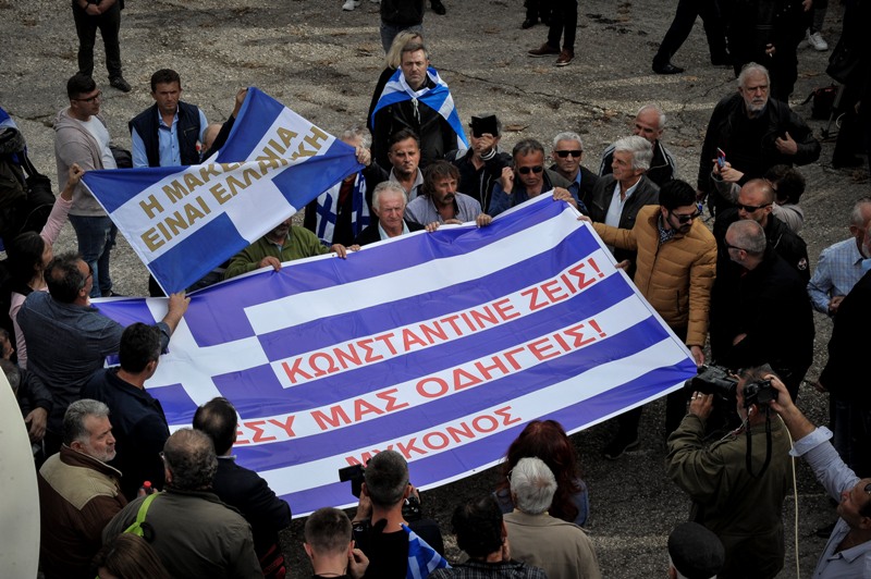 Επίσης ακούστηκαν συνθήματα και για τη Μακεδονία και υπήρχαν σημαίες στις οποίες αναγράφεται: «Η Μακεδονία είναι ελληνική». Το σύνθημα που ακούστηκε περισσότερο είναι το «Κωνσταντίνε ζεις, εσύ μας οδηγείς».