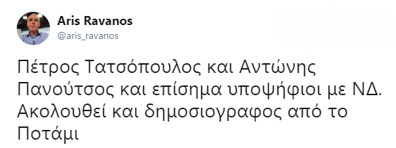Σημειώνεται ότι ο δημοσιογράφος Άρης Ραβανός επιβεβαίωσε τις δύο υποψηφιότητες προσθέτοντας, μάλιστα, ότι «ακολουθεί και δημοσιογράφος από το Ποτάμι».