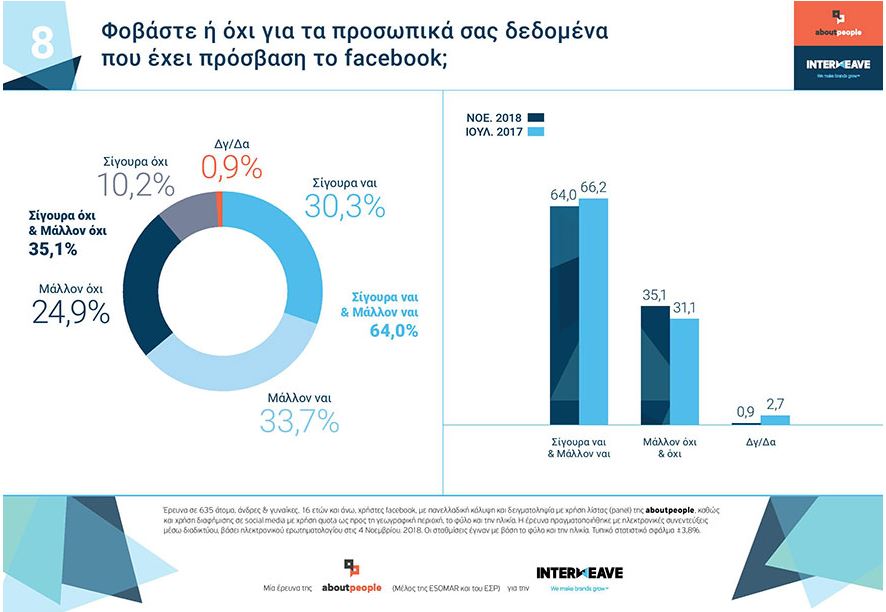 Το 64% ανέφερε ότι φοβάται για τα προσωπικά του δεδομένα στο Facebook.