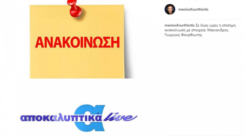 Σήμερα μάλιστα θέλησε μέσα από μία φωτογραφία που έγραφε με κατακόκκινα γράμματα την λέξη ανακοίνωση να κάνει αισθητή την παρουσία του στο Instagram γράφοντας μάλιστα στην λεζάντα: «Σε λίγες ώρες η επίσημη ανακοίνωση με στοιχεία. Μαίνανδρος Γεώργιος Φουρθιωτης».