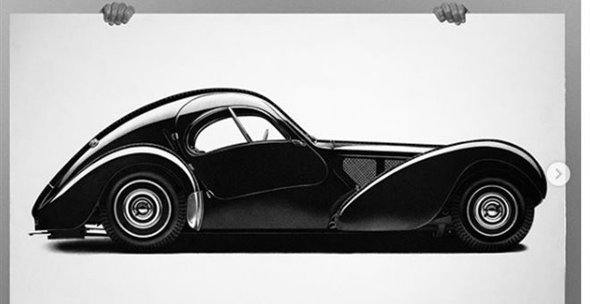 Με αποτέλεσμα, ο καλλιτέχνης που έχει σκιτσάρει κάποια από τα πιο αναγνωρίσιμα αντικείμενα του κόσμου του ντιζάιν να χρησιμοποιεί μελάνι για να μεγεθύνει το παιχνίδισμα μεταξύ του φυσικού φωτός και αντικειμένων όπως το κουπέ Gullwing της Mercedes-Benz 300 SL του 1955, ή η Laborghini Miura του 1970, ή η Ferrari 250 GTO του 1962, ή η Porsche 356 του 1958, ή η Bugatti Atlantic Type 57 του 1937, ή η Chevrolet Corvette Stingray του 1969…