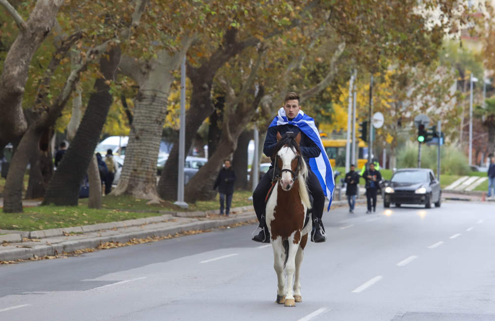Μάλιστα, μαθητής από το 1ο ΕΠΑΛ Ευόσμου κατέβηκε στους δρόμους με το άλογό του.