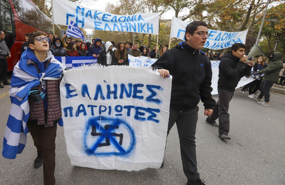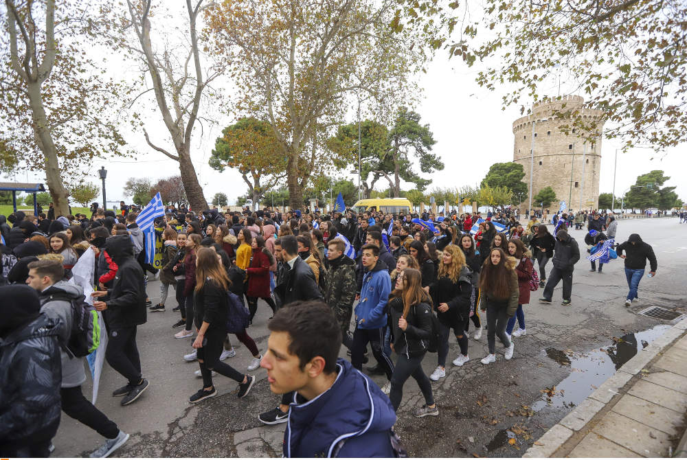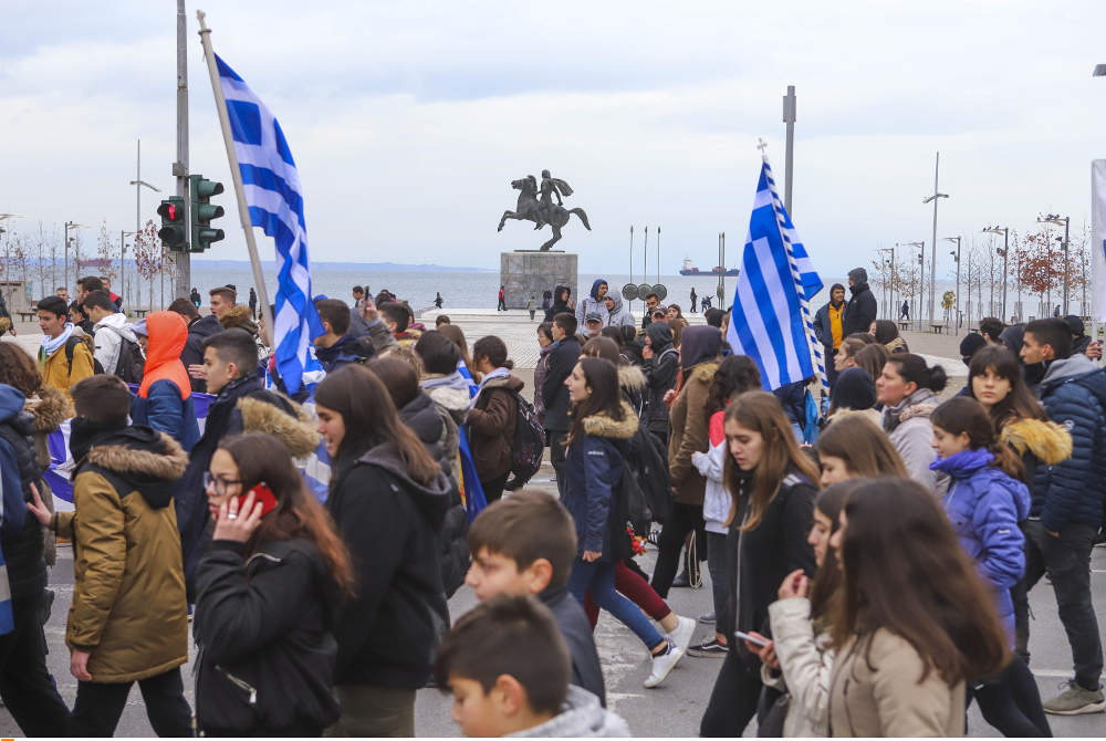 Πάνω από 100 σχολεία στη Θεσσαλονίκη τελούν υπό κατάληψη με τους μαθητές να έχουν αναρτήσει στα κάγκελα ελληνικές σημαίες και πανό με συνθήματα όπως «Η Μακεδονία είναι ελληνική».