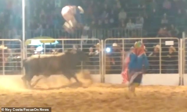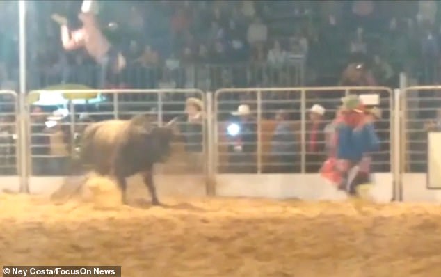 Στο ροντέο, ένας καουμπόι περπατά αλώβητος αφού εκτοξεύτηκε στον αέρα στα