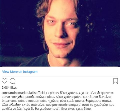Μια συγκινητική ανάρτηση στο instagram δημοσίευσε ο Κωνσταντίνος Μαρκουλάκης με αφορμή τα δέκα χρόνια από την απώλεια ενός αγαπημένου του φίλου.