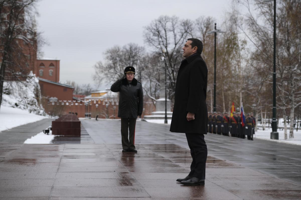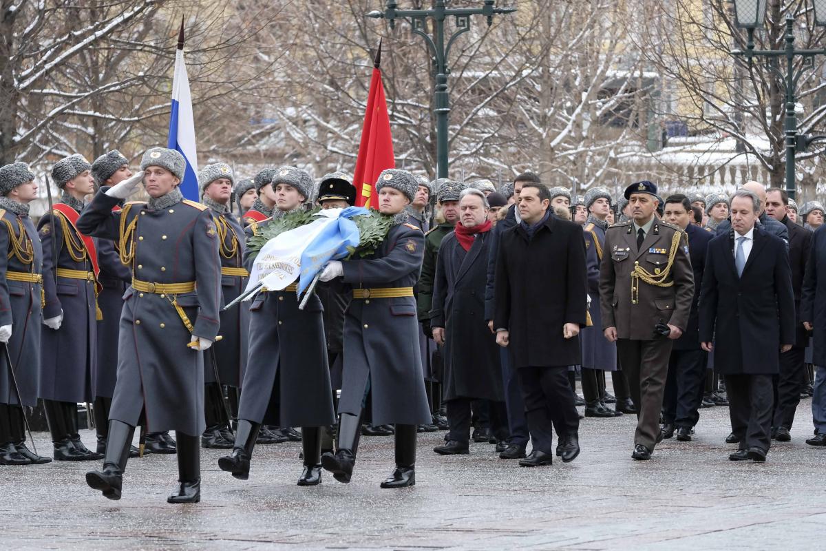 Η αναθέρμανση των ελληνορωσικών σχέσεων είναι η βασική στόχευση της επίσκεψης εργασίας του πρωθυπουργού Αλέξη Τσίπρα στη Μόσχα, το επίσημο πρόγραμμα της οποίας άρχισε στις 10.30 το πρωί με κατάθεση στεφάνου στο Μνημείο Αγνώστου Στρατιώτη και ολοκληρώνεται με τη κοινή συνέντευξη Τύπου Τσίπρα- Πούτιν μετά τις 3 το μεσημέρι.