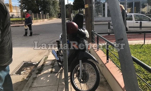 Την ίδια στιγμή ένας νεαρός δικυκλιστής παραβίασε το STOP ανεβαίνοντας την οδό Παπαμαύρου, με αποτέλεσμα να πέσει πάνω στην πόρτα της οδηγού.