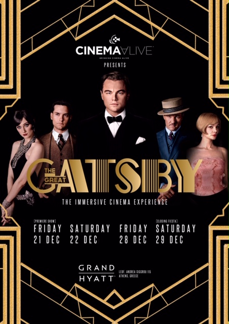 Φέτος, την περίοδο των Χριστουγέννων, για 4 μόνο παραστάσεις, 21 & 22 και 28 & 29 Δεκεμβρίου 2018, το Ballroom, όπως και άλλοι χώροι του νέου 5άστερου αποκτήματος της πόλης, του πρόσφατα ανακαινισμένου ξενοδοχείου GRAND HYATT ATHENS, θα σας υποδεχτούν ώστε να ζήσετε από κοντά τον ανεκπλήρωτο έρωτα του Gatsby με την Daisy, τα ξέφρενα πάρτυ που άφησαν εποχή στη Νέα Υόρκη και πολλές ακόμα σκηνές βασισμένες στην ταινία.