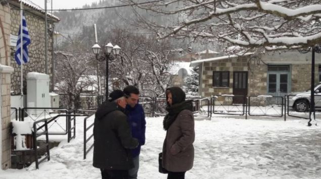Σε φωτογραφίες που ανήρτησε η υπουργός Προστασίας του Πολίτη, Όλγα Γεροβασίλη, ο Α. Τσίπρας φαίνεται να φοράει μπουφάν και après ski μπότες προκειμένου να μπορεί να περπατήσει εύκολα στους χιονισμένους δρόμους, αλλά και στην πλατεία του χωριού.