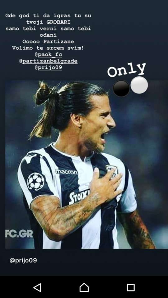«Μόνο στα ασπρόμαυρα», τονίζει ο Γιώργος Σαββίδης με ανάρτηση που έκανε στο Instagram, όπου πόσταρε φωτογραφία του 28χρονου επιθετικού και τάγκαρε και την Παρτιζάν.