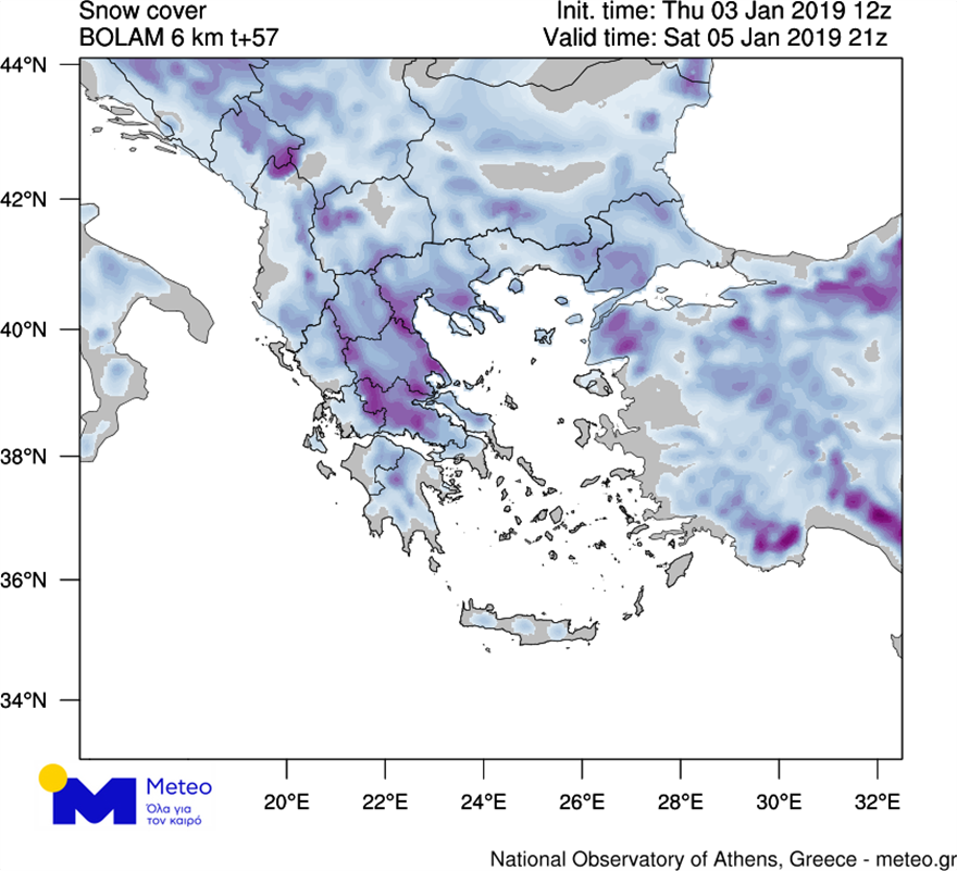 Σύμφωνα με τα έως τώρα διαθέσιμα προγνωστικά στοιχεία της μετεωρολογικής υπηρεσίας meteo του Εθνικού Αστεροσκοπείου Αθηνών (ΕΑΑ), η χιονοκάλυψη θα είναι ιδιαίτερα εκτεταμένη την Παρασκευή. Χιονοπτώσεις αναμένονται στην πόλη της Θεσσαλονίκης και τις βραδινές ώρες πιθανώς στα βόρεια προάστια της Αθήνας. Έντονες χιονοπτώσεις στο Νομό Τρικάλων.