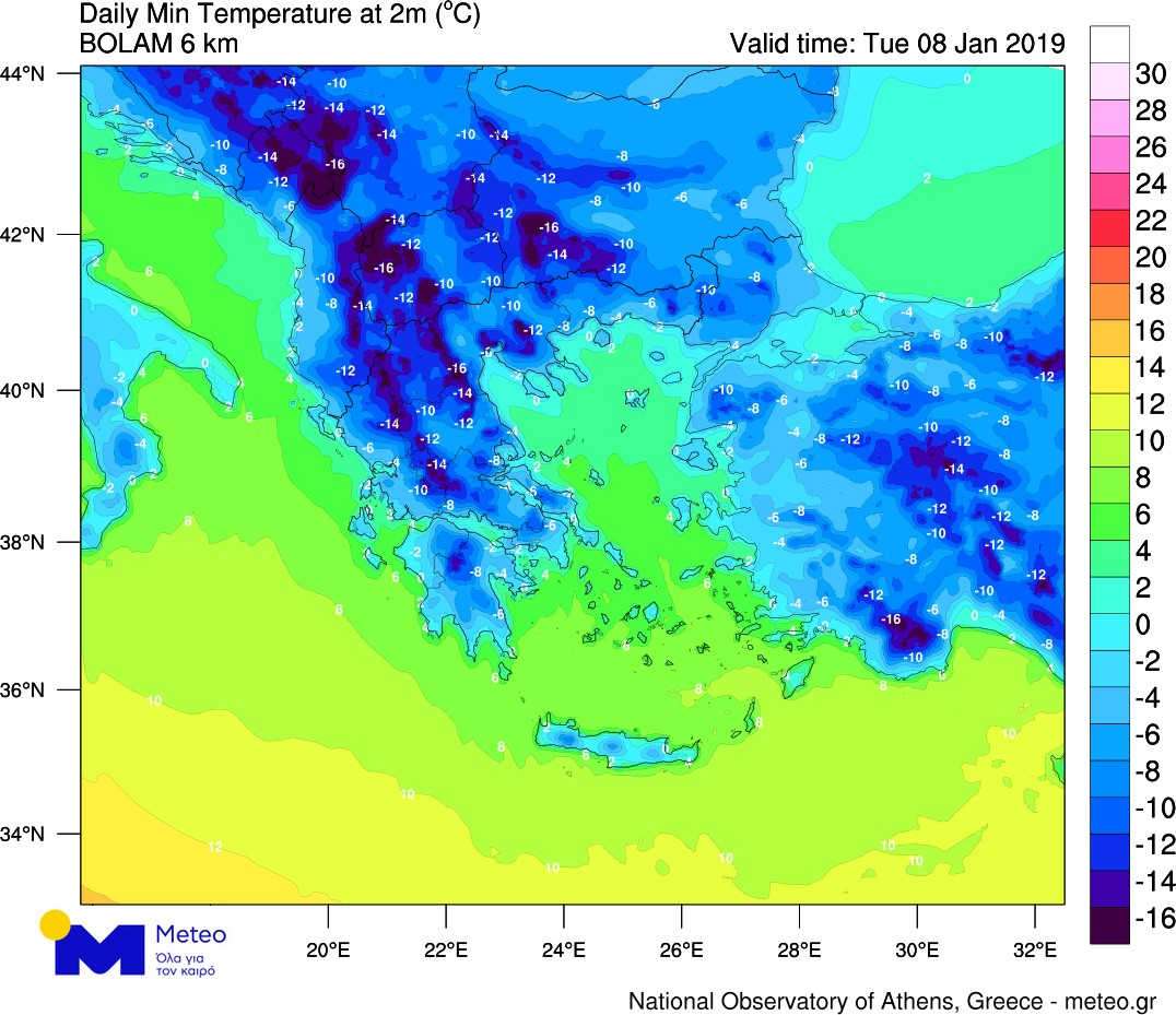 Σύμφωνα με το Εθνικό Αστεροσκοπείο Αθηνών ο παγετός που σχηματίστηκε ήταν πολύ ισχυρός, με συνέπεια να καταγραφούν πολύ χαμηλές θερμοκρασίες.