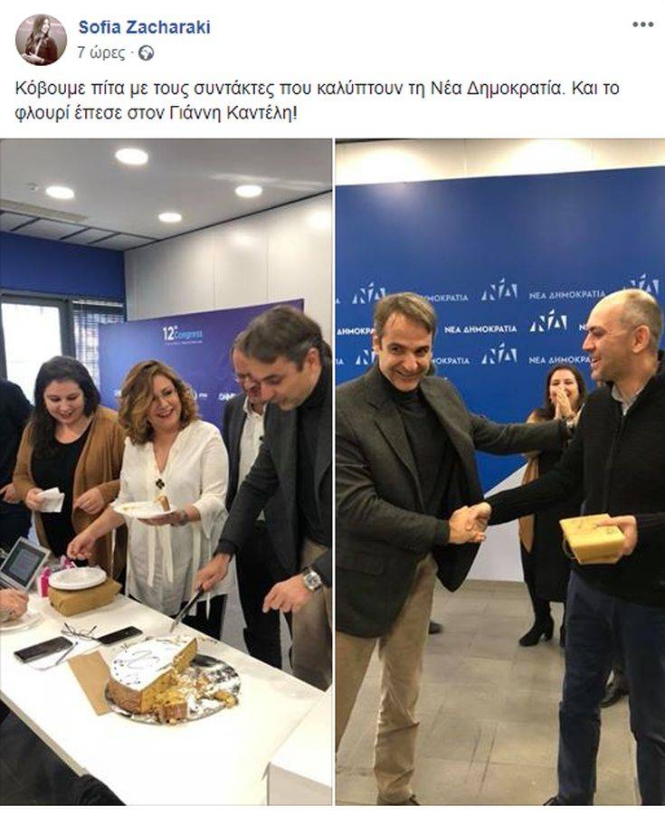 Σύμφωνα με το ethnos.gr ενώ η διαδικασία της κοπής της πίτας βρισκόταν σε πλήρη εξέλιξη, στην αίθουσα µπήκε ο Κυριάκος Μητσοτάκης, φορώντας για ακόµα µία κρύα ηµέρα ζιβάγκο και σακάκι, όπως συνηθίζει ο Βαγγέλης Μεϊµαράκης.