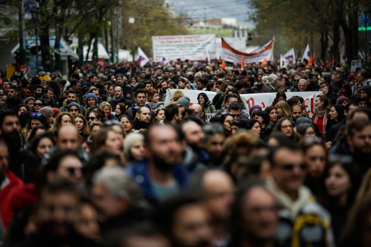 Στην πορεία συμμετείχαν και εκπαιδευτικοί της πρωτοβάθμιας και της δευτεροβάθμιας εκπαίδευσης καθώς και επισφαλώς εργαζόμενοι στους ΟΤΑ.