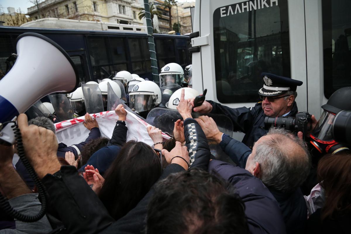 Μερίδα διαδηλωτών επιχείρησε να σπάσει τον φραγμό των ΜΑΤ, με τις αστυνομικές δυνάμεις να απαντούν κάνοντας χρήση χημικών.