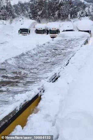 Πέντε τεράστια φορτηγά κατέφθασαν και άνοιξαν το δρόμο χωρίς να έχουν καλή οπτική επαφή, μια και το χιόνι ξεπερνούσε τα