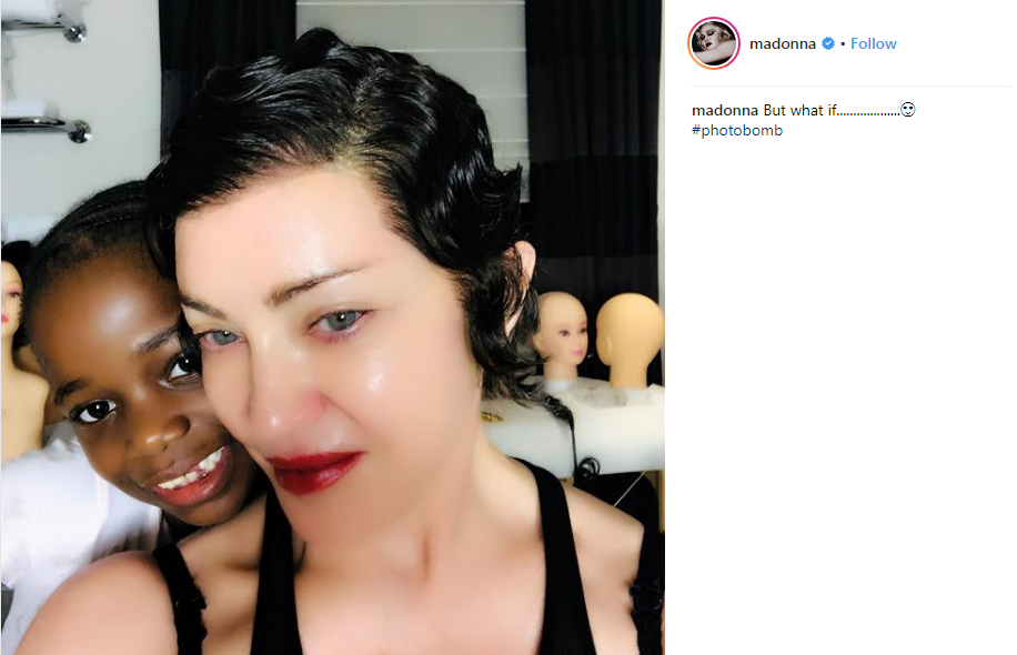 Βέβαια, η Μαντόνα ποζάρει μπροστά από περούκες, οπότε ενδεχομένως φορά μια από αυτές. Η ίδια αφήνει τα πράγματα «θολά», σχολιάζοντας τη φωτο με τη φράση «Κι αν;…».