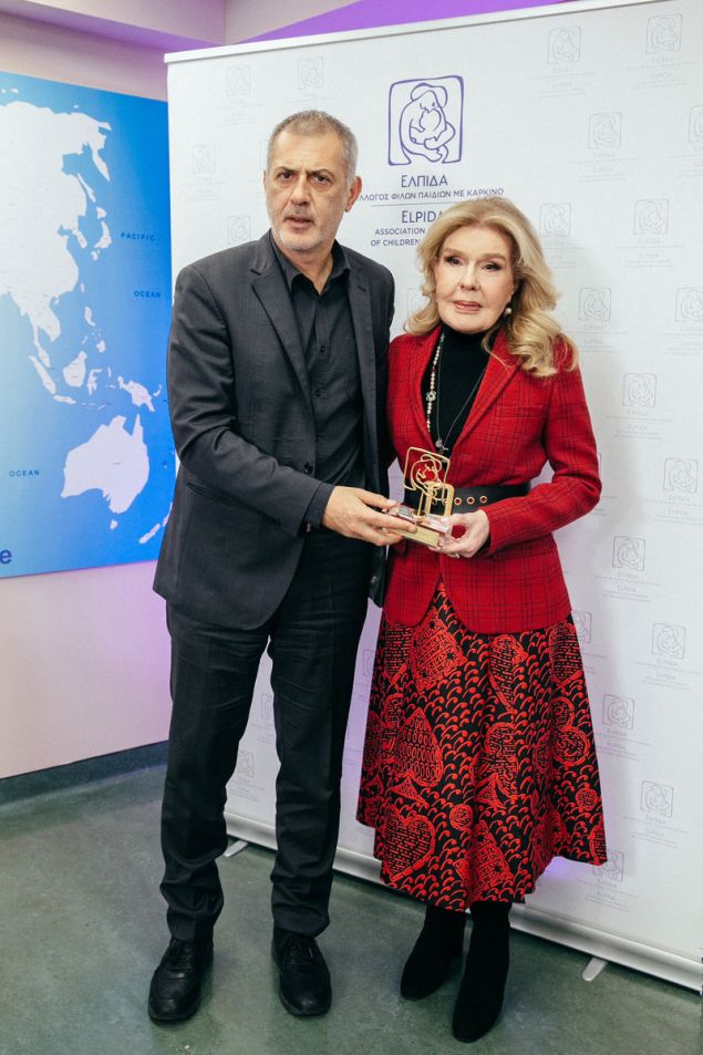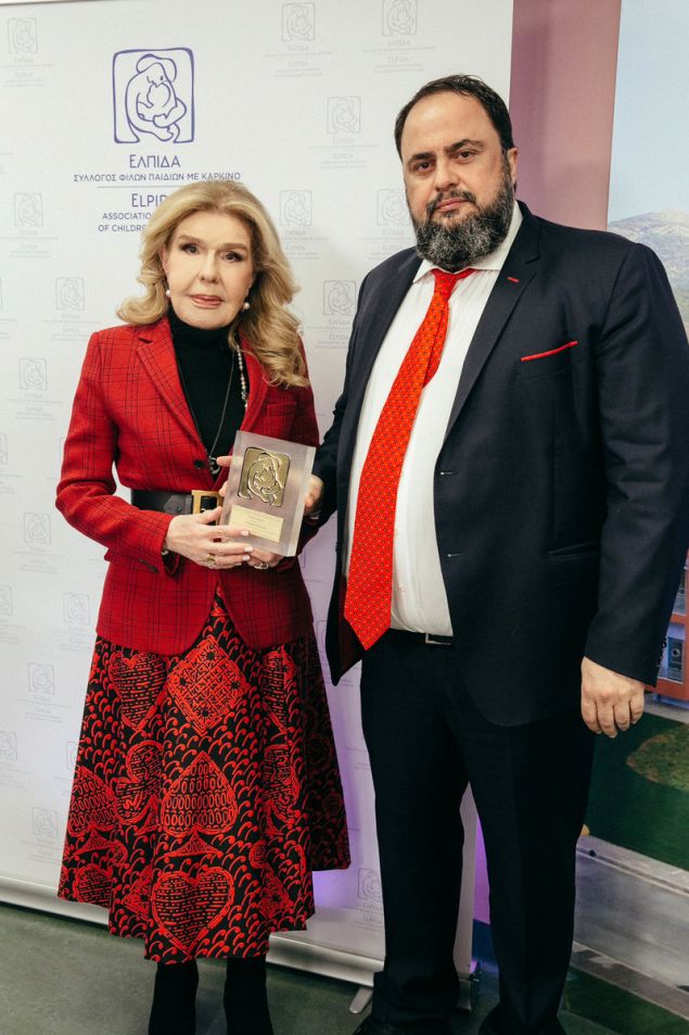 Ο κύριος Μαρινάκης παρέδωσε για ακόμα μια χρονιά στην κυρία Βαρδινογιάννη μια επιταγή για την στήριξη της Ογκολογικής Μονάδας Παίδων.