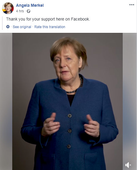 «Σας ευχαριστώ όλους για τη σημαντική υποστήριξη που μου δώσατε στη σελίδα μου στο Facebook», έγραψε η Γερμανίδα καγκελάριος αποχαιρετόντας τους ακόλουθούς της.