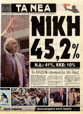Το διάλειμμα της Οικουμενικής και ευρύτερα η ασταθής ισορροπία που προέκυψε μετά τον Ιούνιο 1989 θα λήξει στις εκλογές του Απριλίου 1990, όταν η Ν.Δ. με 46,88% πήρε 150 έδρες και σχημάτισε αυτοδύναμη κυβέρνηση λόγω της στήριξης που της παραχώρησε η ΔΗ.ΑΝΑ. Είναι η σειρά του Κωνσταντίνου Μητσοτάκη να κερδίσει τον Ανδρέα..