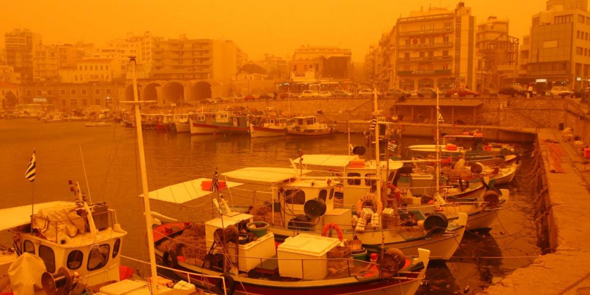 Αφρικανικό τοπίο θυμίζει από τις πρώτες πρωινές ώρες το Ηράκλειο με την αφρικανική σκόνη να έχει κάνει την εμφάνιση της, περιορίζοντας αισθητά την ορατότητα.