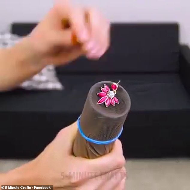 Έπειτα, δέστε το με το λαστιχάκι μαλλιών για να είναι σταθερό και χρησιμοποιήστε τη σκούπα στα σημεία που νομίζετε ότι χάσατε το κόσμημα.