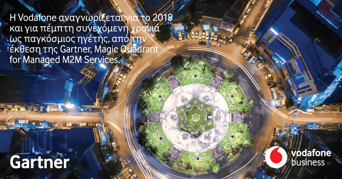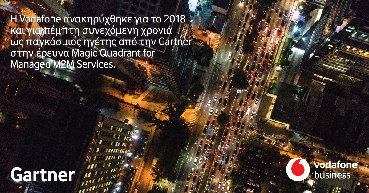 Η Vodafone χαρακτηρίζεται από την Gartner ως ένας διεθνής ηγέτης στην έρευνα Magic Quadrant for Managed M2M Services, Worldwide* για πέμπτη συνεχή χρονιά. Η εταιρεία καταλαμβάνει την υψηλότερη θέση αναφορικά με την ικανότητα εκτέλεσης και την πληρότητα του οράματός της στην κατηγορία των Leaders, με βάση τη μεθοδολογία του Magic Quadrant.