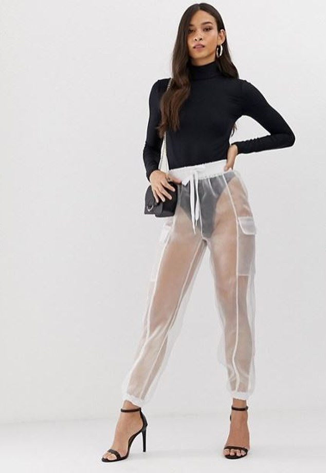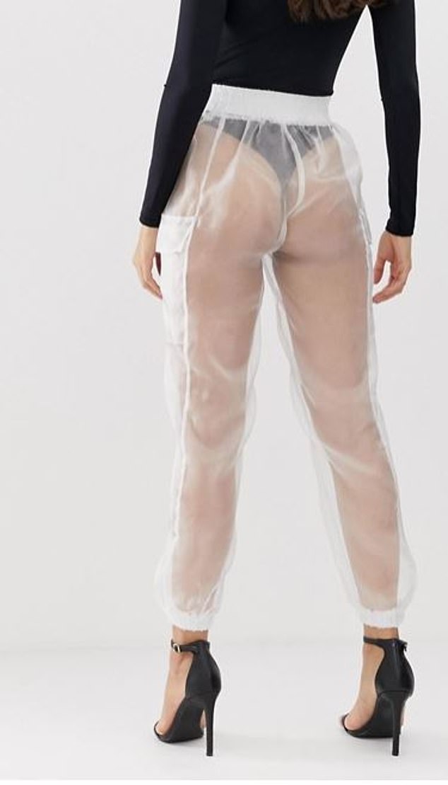 Τα Flounce London παντελόνια είναι διάφανα (σι-θρου όπως θα λέγαμε) και το υλικό από το οποίο είναι φτιαγμένα – πολυεστέρας – είναι παρόμοιο με εκείνο της κουρτίνας του μπάνιου σας.