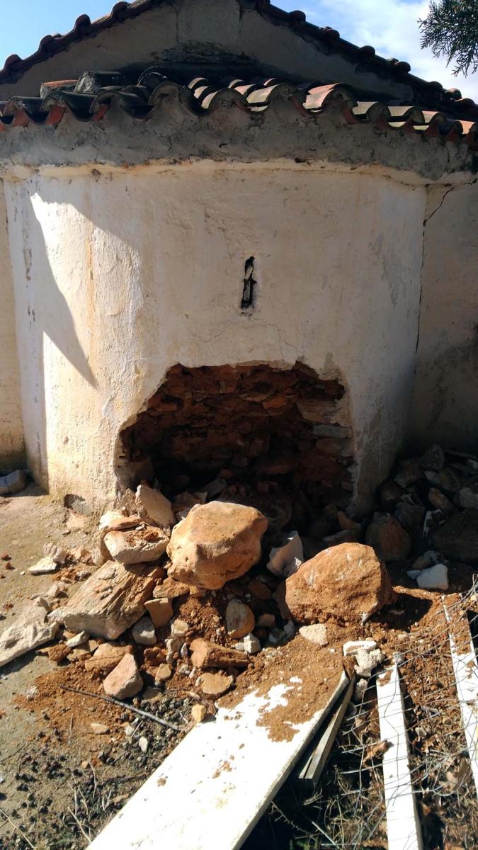 Όπως φαίνεται στις φωτογραφίες, οι δράστες γκρέμισαν τμήμα του Ιερού Βήματος του ναού, όπου προφανώς πίστευαν ότι ήταν κρυμμένα τα πολύτιμα νομίσματα.