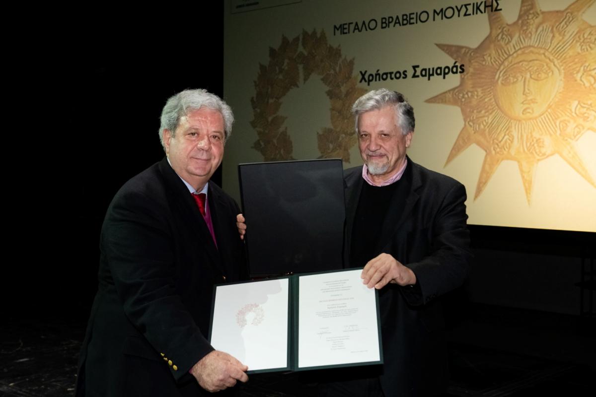 Το σύμβολο για τα Βραβεία Θεάτρου και Μουσικής είναι επίχρυσο ακριβές αντίγραφο στεφάνου ελληνιστικής εποχής, που ανακαλύφθηκε σε βασιλικό τάφο της Αττικής και φυλάσσεται στο Μουσείο Μπενάκη, ενώ αυτό των βραβείων «Κάρολος Κουν» είναι αντίγραφο του «Ηλίου», που φιλοτέχνησε ο ζωγράφος Διαμαντής Διαμαντόπουλος για τις ανάγκες της σκηνοθεσίας της τραγωδίας «Άλκηστις» του Ευριπίδη – του πρώτου αρχαίου δράματος που σκηνοθέτησε ο Κάρολος Κουν.