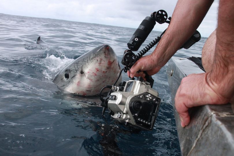 Ένας φωτογράφος ήρθε σε μια απόσταση αναπνοής από ένα μεγάλο λευκό καρχαρία ενώ κρέμεται η κάμερα του πάνω από ένα προστατευτικό κλουβί στη νότια Αυστραλία.