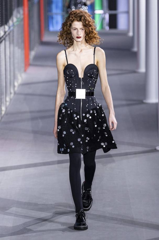 Για τον λόγο αυτό, οι καλεσμένοι του πέρασαν στον τετράγωνο περίβολο του Λούβρου, παραδοσιακό χώρο των ντεφιλέ του πλουσιότερου οίκου παγκοσμίως, και βρέθηκαν στο αναδομημένο σκηνικό του μουσείου σύγχρονης τέχνης που απέχει ένα και πλέον χιλιόμετρο από εκεί.