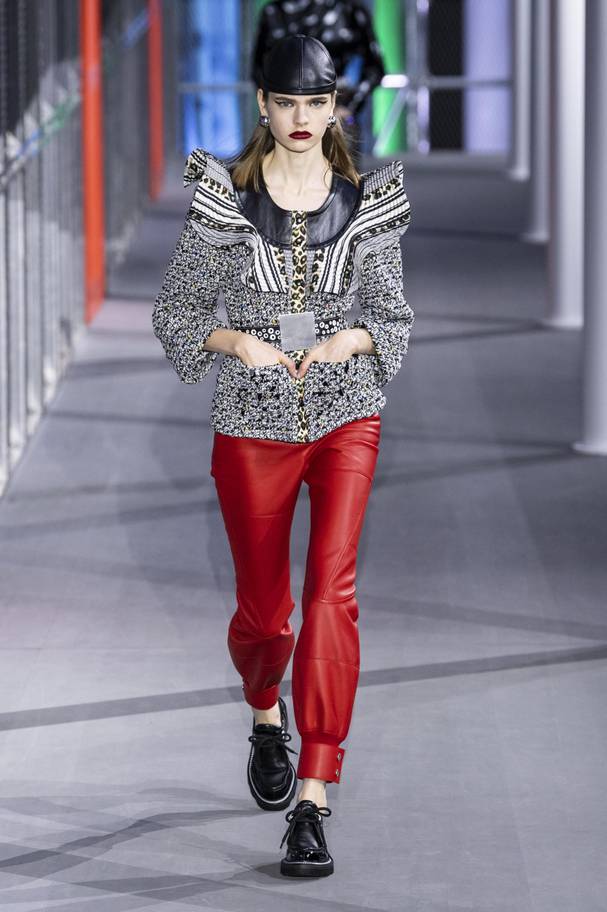 Ο στόχος του Νικολά Γκεσκιέρ, καλλιτεχνικού διευθυντή του Louis Vuitton και σχεδιαστή των γυναικείων κολεξιόν του, ήταν να “δημιουργήσει το σοκ ανάμεσα στο παλιό και στο τωρινό”, σύμφωνα με το σημείωμα της παρουσίασης.