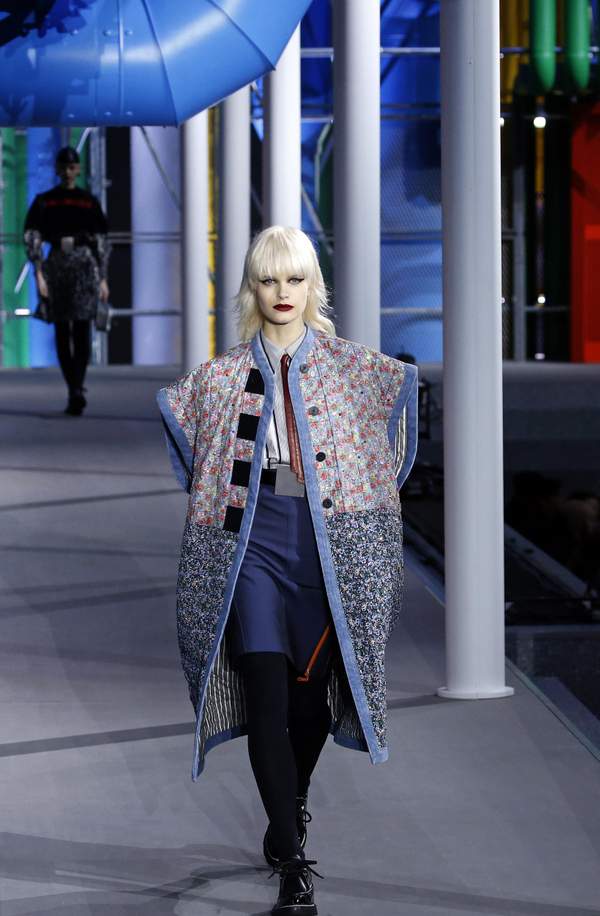 Το ντεφιλέ του Louis Vuitton που έκλεισε την εβδομάδα του γυναικείου pret-a-porter 2019-2020 το βράδυ της Τρίτης στο Παρίσι πραγματοποιήθηκε στο Λούβρο, σε ένα σκηνικό που ανέπλαθε για την εκδήλωση την αρχιτεκτονική ενός άλλου παρισινού μουσείου, του Κέντρου Πομπιντού.