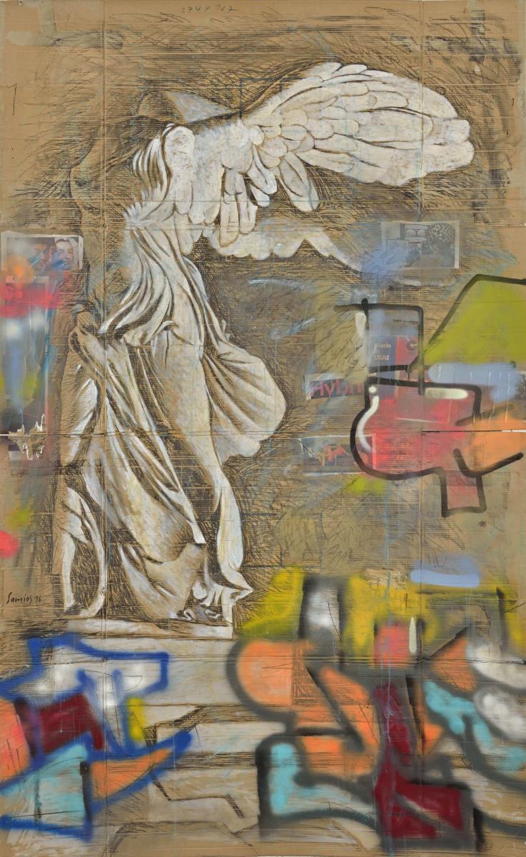 Στον όροφο, η αρχαιότητα έχει τον κύριο λόγο, με τα έργα να συνδιαλέγονται μεταξύ τους μέσα από ενότητες που σχετίζονται μεταξύ τους. «Από τη μία είναι η καταστροφή και από την άλλη η αναγέννηση», τονίζει ο Παύλος Σάμιος εξηγώντας: «Η ιδέα είναι ότι η Ελλάδα περνάει μια τεράστια παρακμή αυτή τη στιγμή. Το ξέρουμε όλοι δεν θέλω όμως να το θίξω πολιτικά αλλά πολιτισμικά. Με ενδιαφέρει το αποτέλεσμα και όχι το ποιος φταίει. Είναι λοιπόν μια έκθεση διαμαρτυρίας, μια μικρή “γκουέρνικα”, η οποία φωνάζει “τους σκοτώσαμε, τους σπάσαμε, πρέπει να ξαναοργανωθούμε, πρέπει να ξαναβρούμε τον εαυτό μας, να ξαναγίνουμε Έλληνες”. Να δώσουμε, δηλαδή, σημασία σε αυτό που έχουμε: Στα αρχαία μας, στα μουσεία μας, στα θέατρά μας, στους ανθρώπους που έχουν γράψει, που έχουν κάνει ποίηση. Να βρούμε νέα παιδιά που δουλεύουν αυτά τα θέματα, ό,τι δηλαδή κάνει ο καθένας πάνω σε ένα έργο σύγχρονο», δηλώνει με έμφαση.