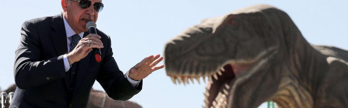 Ένας τεράστιος τυραννόσαυρος ρεξ αποκάλυπτε τα μεγάλα του δόντια, την ώρα που ο πρόεδρος της Τουρκίας Ρετζέπ Ταγίπ Ερντογάν εγκαινίαζε το μεγαλύτερο θεματικό πάρκο της χώρας, λίγο προτού εξαπολύσει μύδρους εναντίον της αντιπολίτευσης ενόψει των δημοτικών εκλογών.
