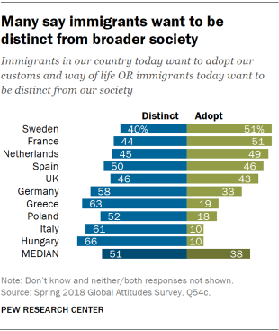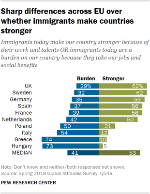 Επίσης, το 74% των Ελλήνων θεωρεί ως «βάρος» για τη χώρα τους μετανάστες, ενώ σε Σουηδία και Βρετανία το 62% πιστεύει ότι οι μετανάστες κάνουν τη χώρα πιο ισχυρή. Και σε αυτή την περίπτωση, την Ελλάδα ακολουθεί η Ουγγαρία με ποσοστό 73%.