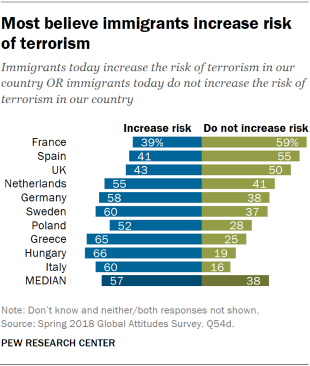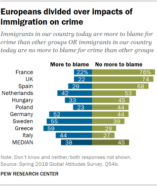Το 59% των Ελλήνων θεωρεί ότι οι μετανάστες αυξάνουν την εγκληματικότητα στη χώρα, το 63% ότι δεν επιθυμούν να ενσωματωθούν στην ελληνική κοινωνία και το 65% ότι η παρουσία τους αυξάνει τον κίνδυνο για τρομοκρατικές ενέργειες.