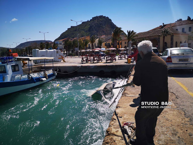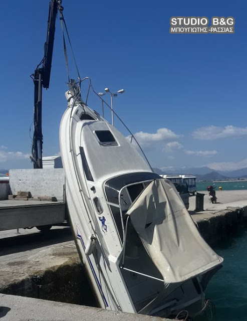 Με ιμάντες έδεσαν το βυθισμένο σκάφος και το ανέλκυσαν έξω από το νερό.