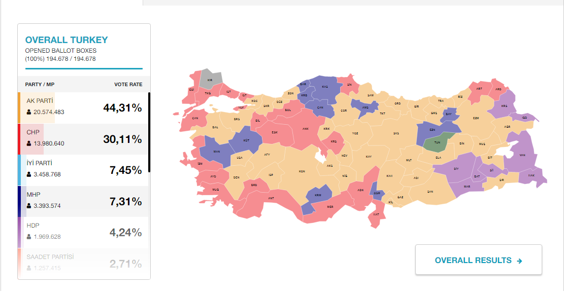 Ήδη, ο πρόεδρος του Συμβουλίου ανέφερε ότι ο Ιμάμογλου έλαβε 4.159.650 ψήφους, ενώ ο Γιλντιρίμ υποστήριξε ότι 319.000 άκυρες ψήφοι αποτελούν κρίσιμο μέγεθος για την ανακήρυξη του τελικού νικητή.