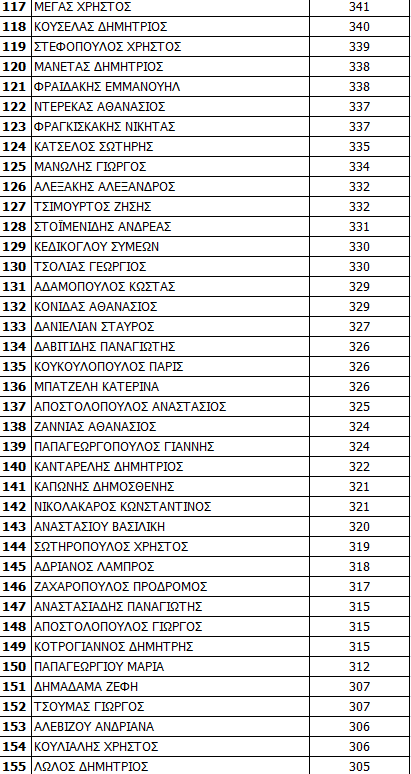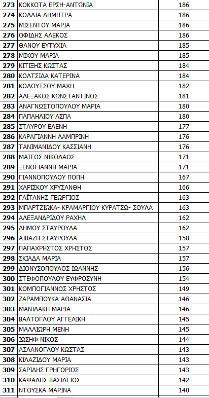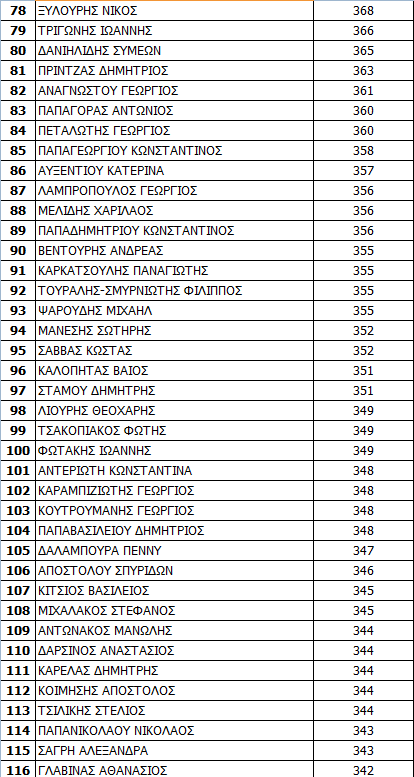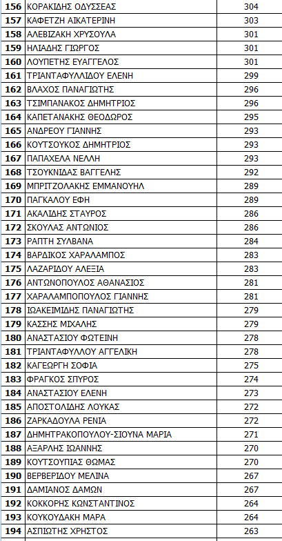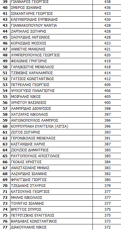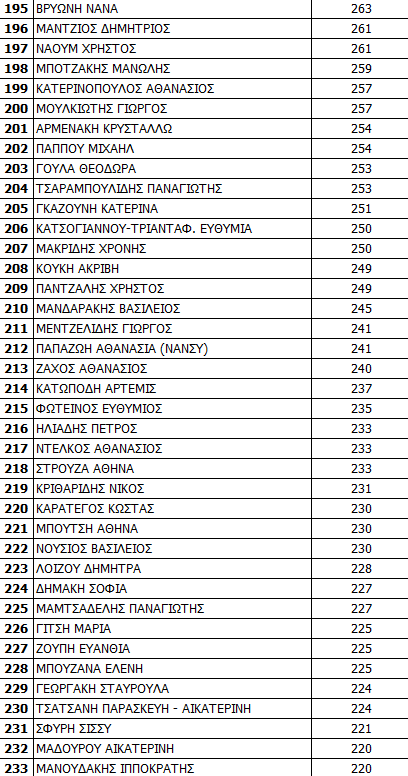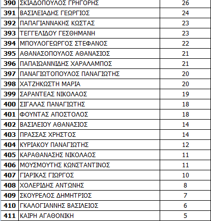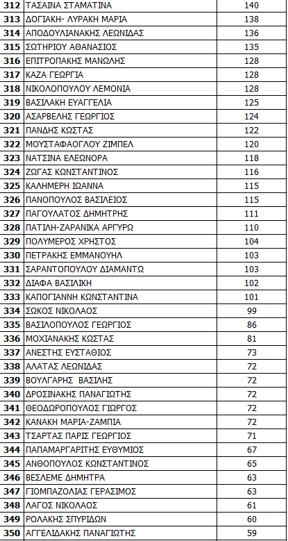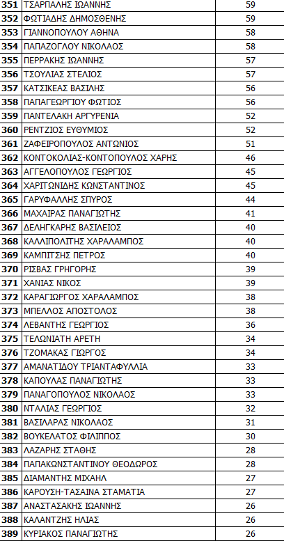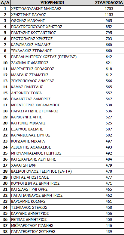 Η τελική κατάταξη θα διαμορφωθεί μετά από τον υπολογισμό της ποσόστωσης των γυναικών που είναι 33%.