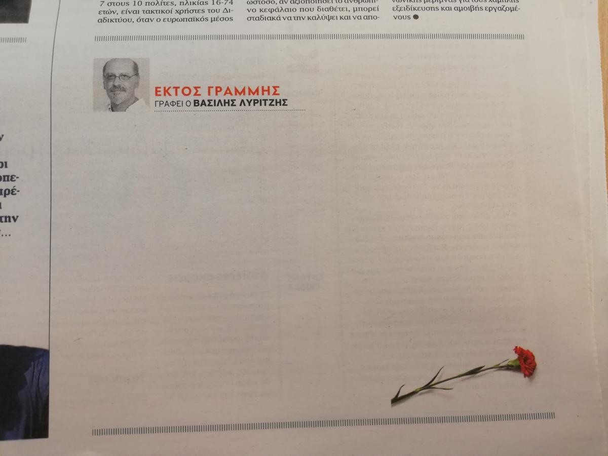 Η στήλη του Βασίλη Λυριτζή στο σημερινό φύλλο (Τετάρτη 3 Απριλίου 2019)