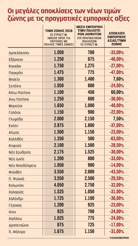 Σύμφωνα με πληροφορίες της Καθημερινής, στο υπουργείο Οικονομικών επιθυμούν να ελαφρύνουν τους ιδιοκτήτες ακινήτων σε περιοχές όπως για παράδειγμα το Πέραμα, ο Κορυδαλλός, η Νίκαια και το Κερατσίνι και, αντίθετα, να αυξήσουν τις τιμές στο Σύνταγμα, το Παγκράτι, το Κολωνάκι, ακόμα και στους Αμπελοκήπους, εξαιτίας της μεγάλης ζήτησης που καταγράφεται τους τελευταίους 12 μήνες, αν και οι υφιστάμενες τιμές που αναπροσαρμόσθηκαν το 2018 είναι στις περισσότερες περιπτώσεις υψηλότερες από τις τιμές πώλησης των ακινήτων.